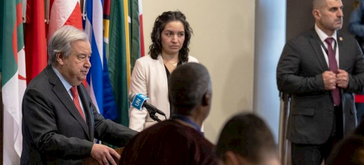 Guterres, konuşmasını tamamlamadan önce, çatışmalarda hayatını kaybeden BM personeli ve insani yardım görevlileri de dahil olmak üzere sivillere saygılarını sundu.