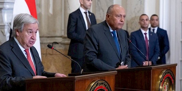 Gazze'de temel malzeme tükenirken, BM Genel Sekreteri António Guterres 19 Ekim 2023 Perşembe günü kuşatma altındaki bölgeye insani yardım çağrısında bulundu. Mısır Dışişleri Bakanı Sameh Shoukry ile birlikte Kahire'de…