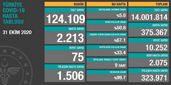 Dünyada ve Türkiye’de Koronavirüs’te son durum (31.10.2020)