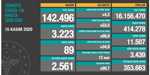 Dünyada ve Türkiye’de Koronavirüs’te son durum (15.11.2020)