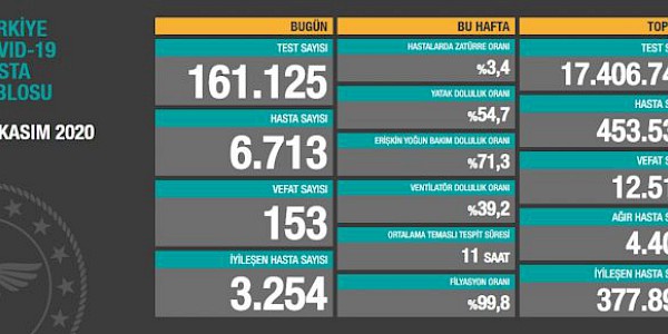 Türkiye’de Koronavirüs’te son durum (23.11.2020) Sağlık Bakanlığı'nın, 23 Kasım 2020 tarihinde yaptığı açıklamada, 24 saatte 153 kişi hayatını kaybederken 6 bin 713 yeni hasta tespit edildi. Bugün açıklanan verilerin…
