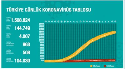 Bugünkü 2 bin 826 kişiyle ile birlikte toplam iyileşen sayısı 101 bin 715 oldu. Toplam entübe hasta sayısının 535, toplam yoğun bakım hasta sayısının ise 998 olduğu belirtildi