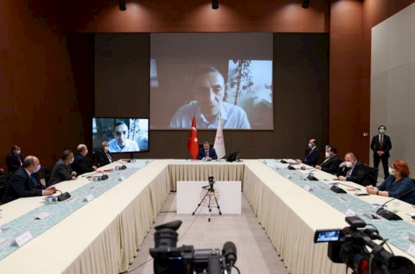 Sağlık Bakanı Dr. Fahrettin Koca başkanlığında toplanan Bilim Kurulu toplantısına BioNTech’in CEO’su Prof. Dr. Uğur Şahin' de katıldı, 20 Mayıs 2021