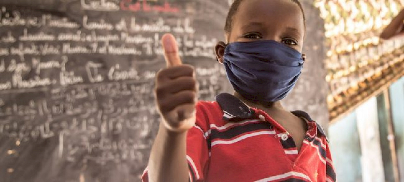 UNICEF/Raphael Pouget-Moritanya, Nouakchott'ta 8 yaşındaki bir çocuk, COVID-19'u önleme konulu bir farkındalık oturumunun ardından...