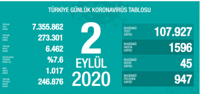 * Bugünkü hasta sayısı bin 596. Ölen kişi sayısı 45. Bugün toplam test sayısı 107 bin 927. Bugün iyileşen hasta sayısı 947. Bu dönemde toplam ağır hasta sayısı bin 17. Binin üzerine bugün çıkmış olduk.