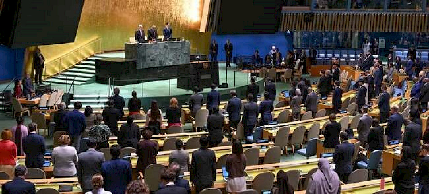 BM Fotoğrafı/Evan Schneider, 78. BM Genel Kurul son oturumunda, Genel Kurul Salonu'nun geniş açılı görünümü, sessiz bir anı olarak düzenlendi (10.9.2024).
