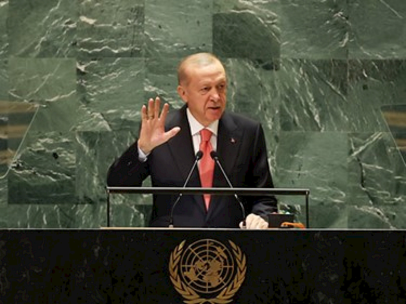 Birleşmiş Milletlerin kuruluşuyla birlikte küresel istikrara, huzura ve adalete dair beklentilerin yeniden yeşerdiğini, barış umutlarının yeniden filizlendiğini dile getiren Cumhurbaşkanı Erdoğan, "Ancak üzülerek görüyoruz ki son yıllarda Birleşmiş Milletler kuruluş misyonunu ifa etmekte yetersiz kalıyor. Giderek işlevsiz, hantal ve atıl bir yapıya dönüşüyor. 'Dünya Beşten Büyüktür' şiarının temsil ettiği değerlere, bugünlerde daha çok daha fazla ihtiyaç duyuyoruz" dedi.Cumhurbaşkanı Erdoğan, uluslararası barış ve güvenliğin imtiyazlı beş ülkenin keyfine bırakılmayacak kadar önemli olduğuna şahitlik edildiğini kaydetti.