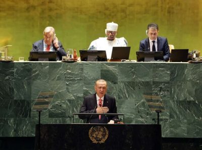 Cumhurbaşkanı Recep Tayyip Erdoğan, ABD’nin New York şehrinde Birleşmiş Milletler (BM) 79. Genel Kurulu’na katılarak 24 Eylül 2024 tarihinde bir konuşma yaptı.Salondakileri selamlayarak konuşmasına başlayan Cumhurbaşkanı Erdoğan, BM Genel Kurulu’na bugün bir kez daha seslenme fırsatı bulmaktan büyük bir bahtiyarlık duyduğunu dile getirdi ve 79. Genel Kurul’un ülkeler ve tüm insanlık için hayırlara vesile olmasını temenni etti.