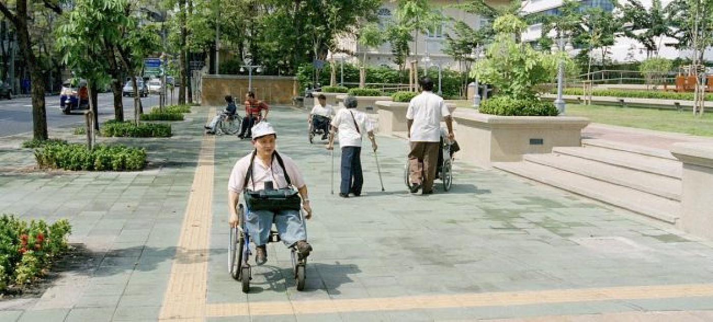 BM Fotoğrafı/Eskinder Debebe: Tayland'ın Bangkok kentinde, algılanabilir rehberler ve uyarılar gibi erişilebilirlik ve yardımcı özelliklerin yerleştirildiği bir park.