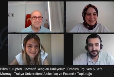 Ömrüm ile Sefa Trakya Üniversitesi Eczacılık Fakültesi öğrencileri, daha birinci sınıftan itibaren farklı hangi projeleri yapabiliriz, öğrendiğimiz yenilikleri, yapay zekâ gibi teknolojileri gelenekselleşmiş mesleğimize nasıl uygulayabiliriz diye düşünüp birlikte Akılcı İlaç ve Eczacılık Öğrenci Topluluğunda çalışmaya başlamışlar. Zaman ayırarak öğrenci topluluklarında emek vermenin gençlere özellikle ilişki ağlarını geliştirmede, yönetim ve kriz çözme becerilerini arttırma başta, sayısız yararı olduğunu vurgulamam lazım. Öğrenci kulüp ve toplulukları geleceğin her alanda lider adaylarına adeta bir kuluçka merkezi oluyor.