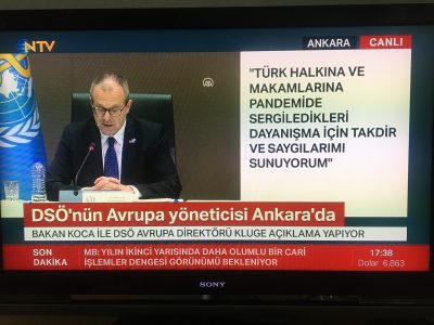 Sağlık Bakanı Dr. Fahrettin Koca, Dünya Sağlık Örgütü Avrupa Bölge Direktörü Dr. Hans Kluge ile 9 Temmuz 2020 saat 17.00 de Ankara’da ortak bir basın toplantısı düzenledi. Dr. Koca, "DSÖ ile Türkiye arasındaki ilişkilerin genişletilmesi konusunda Bölge Direktörü ile mutabakat içerisindeyiz. İstanbul'da DSÖ Ofisini hızla hayata geçiriyoruz. Ofis sağlık acil durumları konusunda faaliyet gösterecek" dedi.
