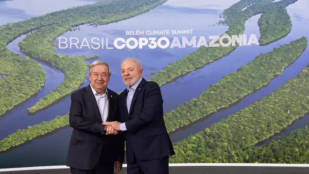 Foto: BM Genel Sekreteri A. Guterres ve Brezilya Devlet Başkanı Lula da Silva COP30 Zirvesinde Brezilya'nın Belém kentinde 10-21 Kasım 2025 tarihleri arasında düzenlenen 30. Birleşmiş Milletler Yıllık İklim Konferansı…