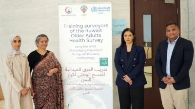 Foto: DSÖ Küresel Yaşlanan Nüfus Araştırması (DSÖ-GAPs) metodolojisinin benimsenen Kuveyt versiyonunun yerinde eğitimi – Kuveyt Yaşlı Yetişkinler Sağlık Araştırması (KOAHS). © 2024, Fatemah Bendhafari'nin izniyle