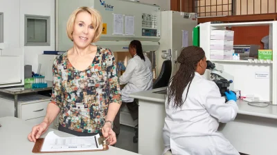 Foto: Prof. Helen Rees, Wits RHI'nin Klinik Deney Laboratuvarlarından birinde. © 2015, Anthea Pokroy