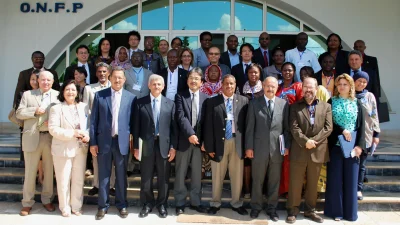 Foto: Dr. Majed Zemni (ön sıra, sağdan dördüncü), Office National de la Famille et de la Population (ONFP) İcra Kurulu Başkanı, Japonya Uluslararası İşbirliği Ajansı (JICA) ile işbirliği kapsamında cinsel ve üreme sağlığı programlarının yönetimi konusunda uluslararası eğitim oturumunda çeşitli Afrika ülkelerinden katılımcılarla birlikte, Tunus 2013. © 2013, Office National de la Famille et de la Population