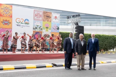 Foto: BM Hindistan/Ruhani Kaur. BM Genel Sekreteri Antonio Guterres, G20 Zirvesi için Yeni Delhi'ye gelişinde Dışişleri Bakanlığı Ortak Sekreteri Prakash Gupta tarafından kabul edildi.