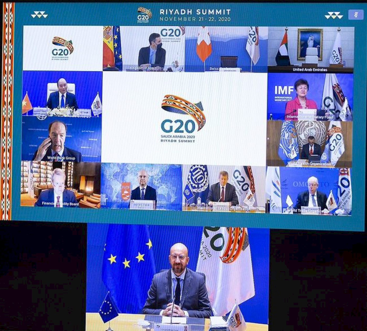 Suudi Arabistan'ın başkanlığında çevrim içi yapılan G-20 Zirvesi'ne Türkiye'nin yanı sıra Almanya, ABD, Arjantin, Avustralya, Brezilya, Çin, Endonezya, Fransa, Güney Afrika, Güney Kore, Hindistan, İngiltere, İtalya, Japonya, Kanada, Meksika, Rusya, Suudi Arabistan, Avrupa Birliği (AB) Komisyonu katılıyor. Zirvede, 20 Ocak 2021’de görevini bırakması beklenen ABD Başkanı Donald Trump da son kez yer alacak.