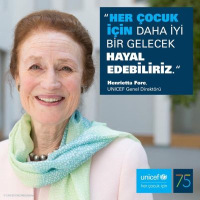UNICEF’in kuruluşunun 75. yıl dönümünü kutladığımız bu yıl, her çocuk için geleceği tekrar hayal edelim. Çocuklar ve gençler için el ele verelim. Onlar için fırsatlar yaratmak, hayallerini canlı tutmak ve hayatlarının her anında onları desteklemek üzere çalışalım.