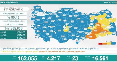 Türkiye’de Koronavirüs’te son durum (17-18 Nisan 2022)