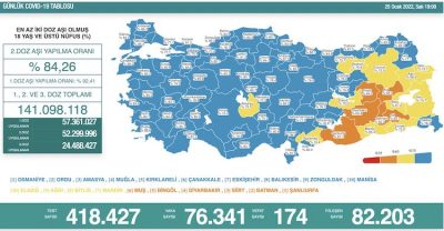 Türkiye’de Koronavirüs’te son durum (25-26 Ocak 2022)