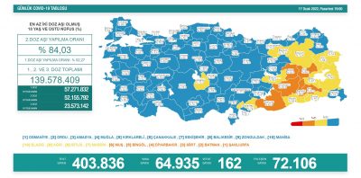 Türkiye’de Koronavirüs’te son durum (21-22 Ocak 2022)