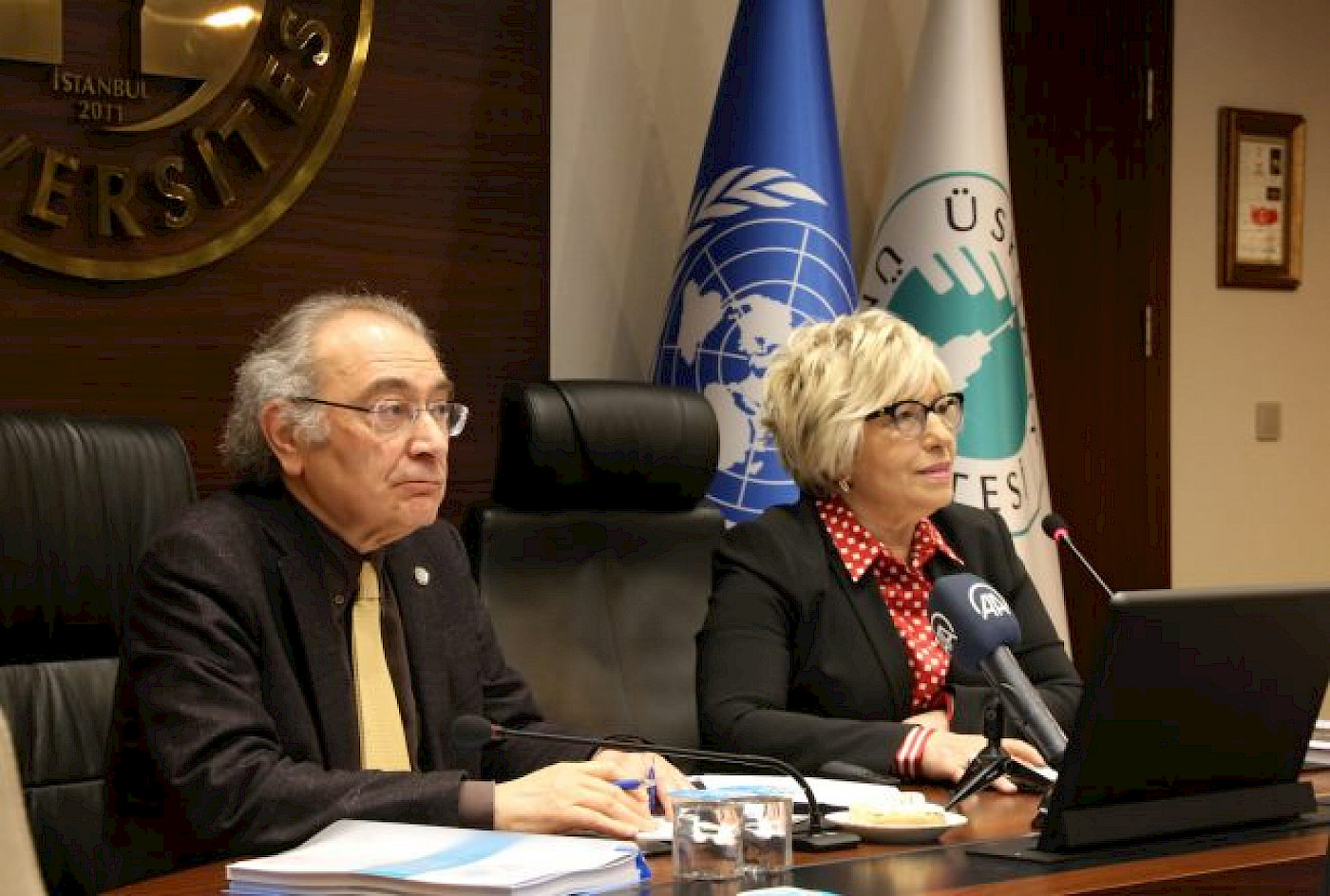 Üsküdar Üniversitesi Altunizade Yerleşkesi Senato Salonunda düzenlenen basın toplantısında Üsküdar Üniversitesi Kurucu Rektörü, Psikiyatrist Prof. Dr. Nevzat Tarhan da hazır bulundu.