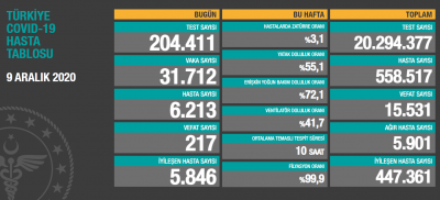 Türkiye’de Koronavirüs’te son durum (09.12.2020)