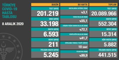 Türkiye’de Koronavirüs’te son durum (07-08.12.2020)