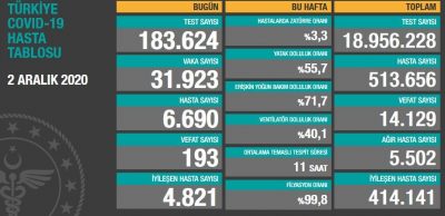 Türkiye’de Koronavirüs’te son durum (01-02.12.2020)