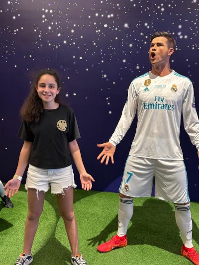 Sonra Real Madrid World’ünkine geçtik. Orada full spor hakkında roller coasterlar vardı. İlk başta Al… ile başka çocuklarla maç yaptık. Sonra küçük bir tane roller coastera bindik. Ondan sonra meet the tars diye bir yer vardı. Orada Real Madrid'in tüm efsanelerinin balmumu maketleri vardı. Mesela Cristiano Ronaldo. Ballon D'or, UCL, FİFA CLUB WORLD CUP ve başka her şey vardı. İmzalı Roberto Carlos forması vardı. Sonra biz tam Real Madrid Mağazasına girerken bi çığlık duyduk. H… ve Y…. şu ana kadar gördüğümüz en büyük roller coastera binmişti. H… bağırıyordu. Ben oradan milli gururumuz Arda Güler’in formasını aldım. Sonra Alpi ile (ben Al’..na alpi diyorum) robot kalecinin olduğunu duyduk ve hemen oraya doğru koştuk. Ama sonra arızalı olduğunu gördük. Ama başka futbol oyunları oynadık. Sonra aslında başka bir gondolla bindik ama bu yatayda dönüyordu. Sonra o yukarı çıkan ve bir anda düşen şeylere bindik. Son olarak Alpi ve ben takım otobüsü roller coaster'a bindik ve Tema parkları bitmişti.