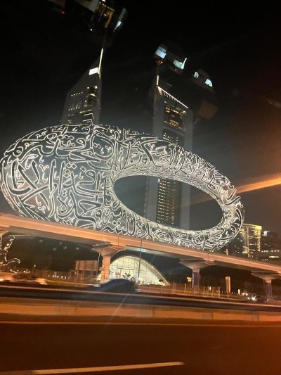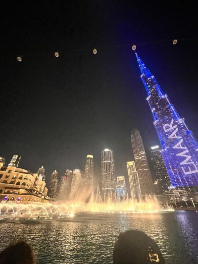 İkinci günümüzde (9 Mart 2025), otel odasından inip aşağıdaki açık büfede güzel bir kahvaltı yaptıktan sonra Dubai Mall’a gittik. Dubai Mall, dünyaca ünlü bir alışveriş merkezi olarak gerçekten çok büyüktü. Alışveriş yapmanın yanı sıra, burada birçok eğlenceli aktivite de yapabiliyorsunuz. Kocaman bir akvaryum var, paten pisti ve eğlence parkları bile vardı. Bu kadar büyük bir alanda kaybolmak bile çok eğlenceliydi. Yanında Burj Khalifa vardı. Daha sonra Future of Museum’a gittik. Bu müze, teknoloji ve gelecek hakkında bilgiler veriyordu ve oda çok büyüktü. İçinde konuşan robotlar, robot köpek, geleceğin uçan araba ve taksileri, asıl olarak seni uzaya götüren bir deneyim vardı. Keşfetmek için harika bir yerdi. Robotik teknolojiler, yapay zekâ uygulamaları ve geleceğin şehirleri hakkında harika sergiler gezdik. Benim için çok ilginç bir deneyim oldu. Hem eğlenceli hem de öğreticiydi. O gün eski Dubai'ye gittik. Oradaki ünlü Starbucks da kahve içtik. Akşam olduğunda geri Dubai Malla gittik ve Burj Khalifa'nın ışık gösterisini izledik.