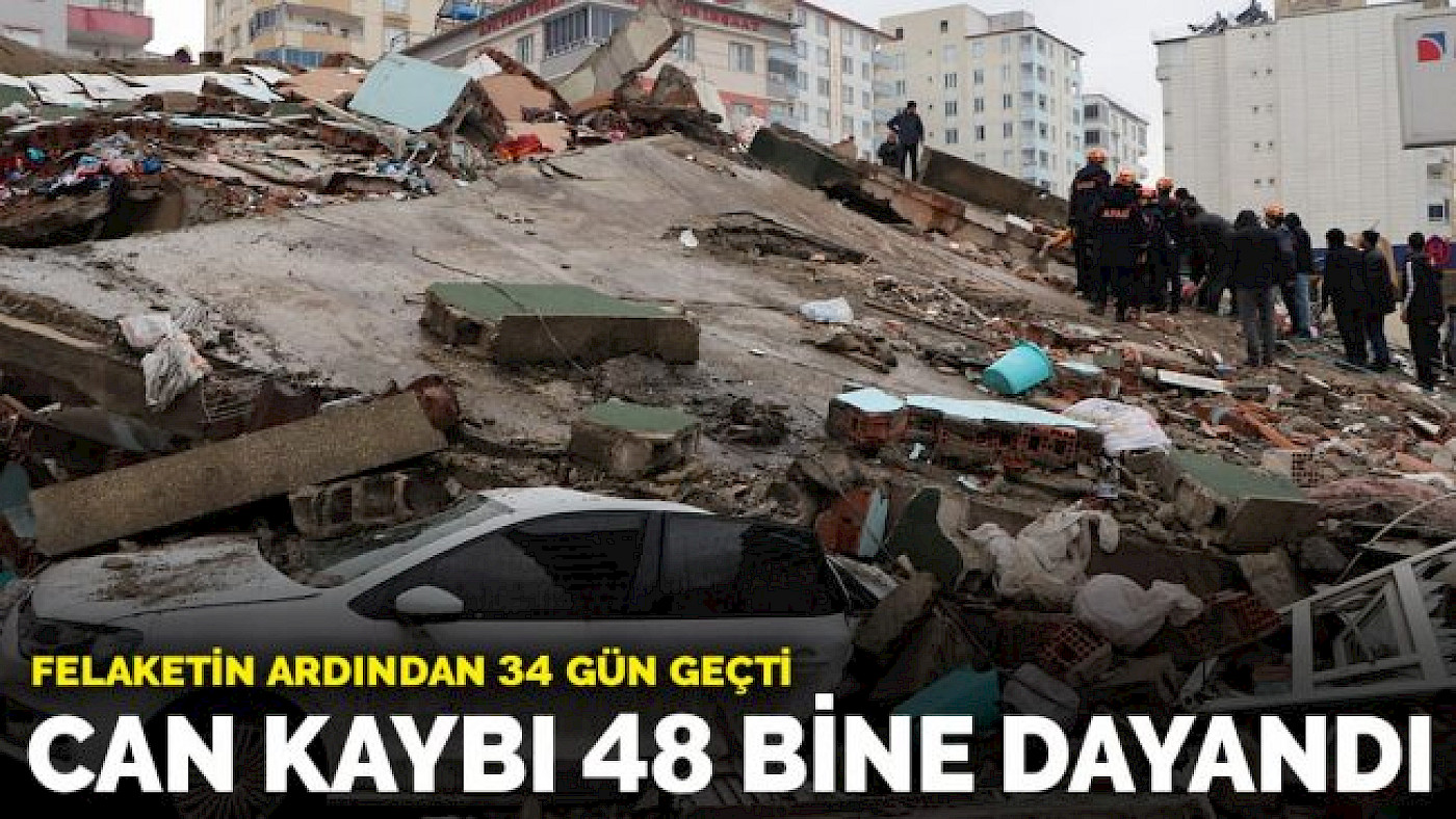 Deprem felaketinde 34. gün: Can kaybı 47 bin 975'e yükseldi.
