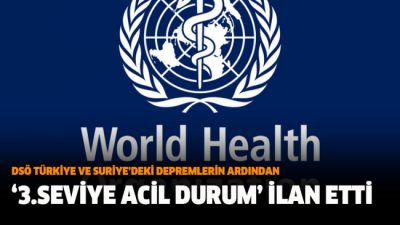 Dünya Sağlık Örgütü (DSÖ) Avrupa Bölge Direktörü Hans Kluge, DSÖ’nün 8 Şubat 2023 tarihi itibariyle, Türkiye ve Suriye’deki depremlerin ardından en yüksek seviye olan “3. Seviye Acil Durum” ilan ettiğini açıkladı.