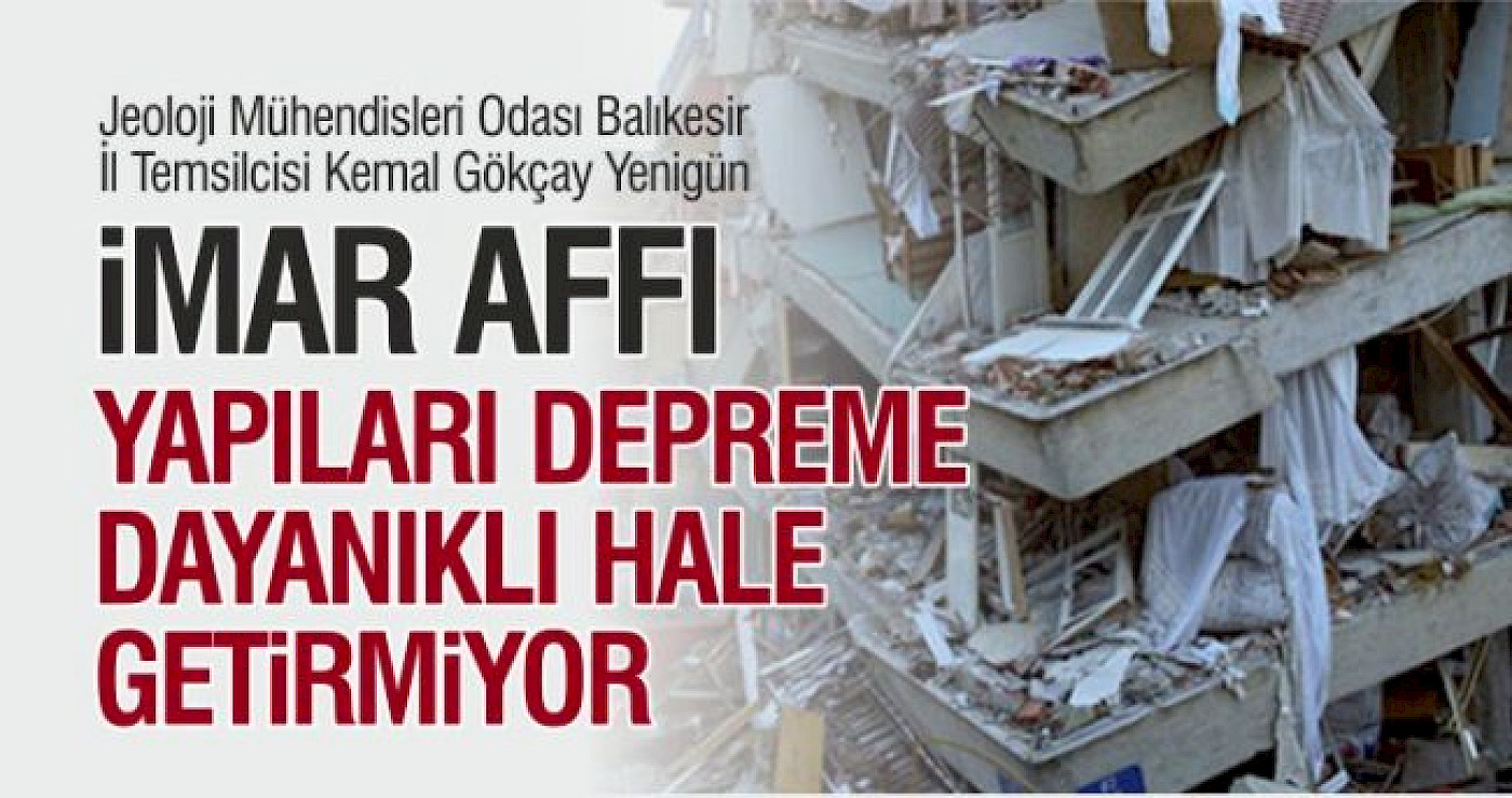 Ekonomim Gazetesi yazarı Alaattin Aktaş da depremlerle ilgili yazısında aynı konuya yer vermiş. ‘İmar Affının Meclis çoğunluğuna bırakılmaması gerektiğini’ vurgulayan Aktaş, şu ifadeleri kullanıyor: