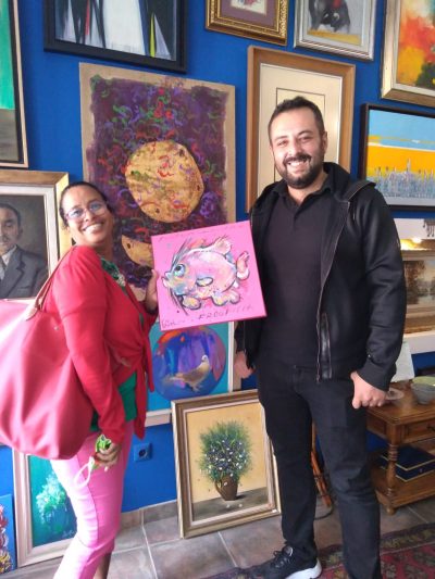 O gün en son Emin Antika dükkânına da girdik, aynı zamanda sergi salonu olarak kullanılan bir mekândı, sahibiyle biraz sohbet etti, babasına selam söyledi veda etti ve çıktık. Sonra dükkân sahibi genç adamın arkamızdan seslendiğini duydum ve geri döndük, bana kendisine bir hediye vermek istediğini söyledi. Tigherada’yı çağırdım, dükkâna geri girdik ve Emin Bey elinde bir tablo ile yaklaştı, kendisine tabloyu etti. Hepimiz şaşırdık, tatlı bir sürpriz olmuştu. Tigherada duygulandı. Ben “işte bu Türk misafirperverliği” diye övündüm, başka nerde olurdu ki böyle bir jest!