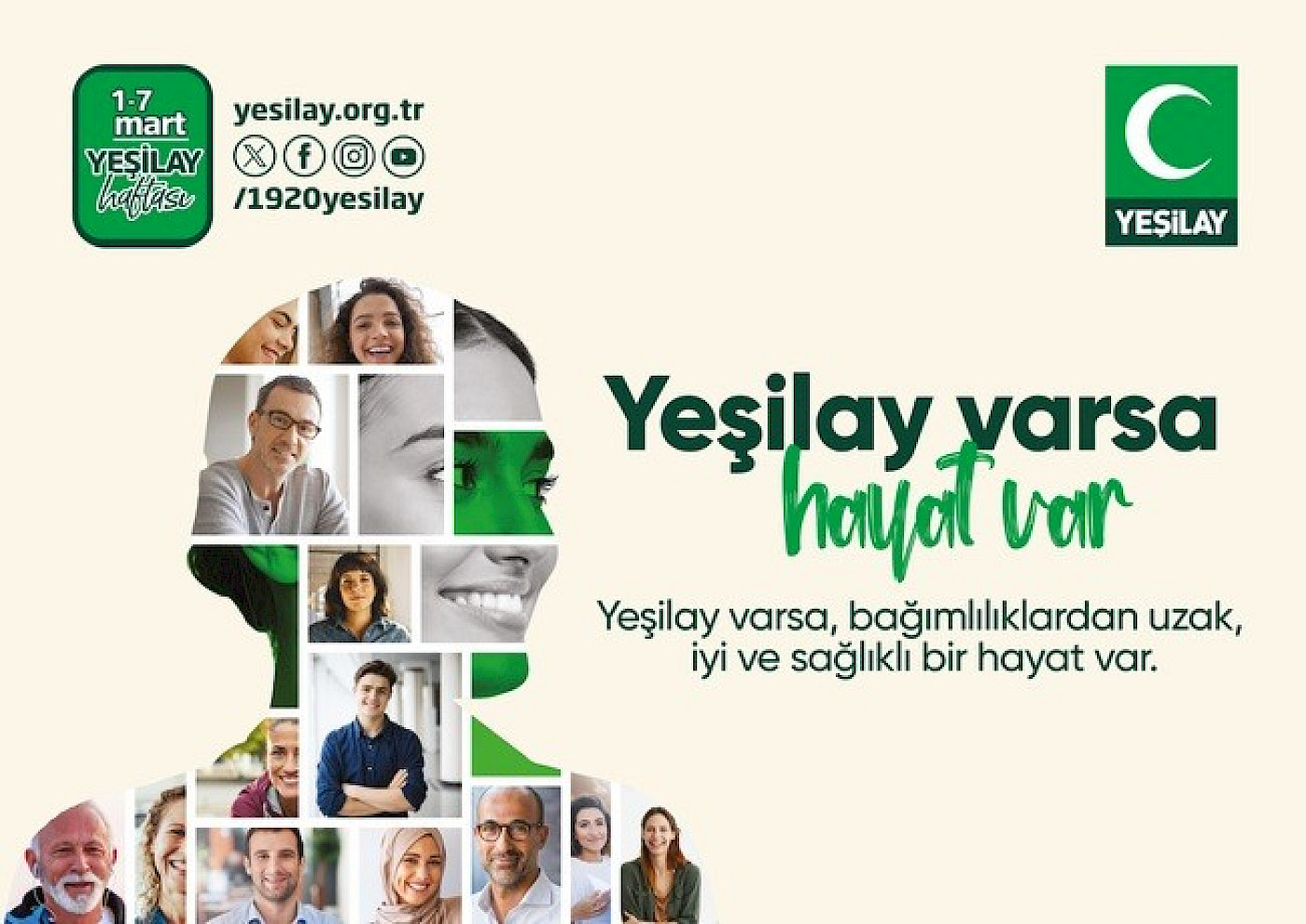 5 Mart 1920’de kurulan ve Türkiye’nin en saygın sivil toplum kuruluşlarından biri olan, başta gençler olmak üzere tüm vatandaşlara bağımsız, sağlıklı ve insan onuruna yaraşır bir gelecek tesis etmek için kararlılıkla çalışmalarını sürdüren Yeşilay 104 yaşında. Alkol, tütün, madde, kumar ve teknoloji bağımlılıklarıyla mücadele eden ve toplumun zararlı alışkanlıklardan korunması için çalışan bir sivil toplum kuruluşu olan Yeşilay, 120 şube, 107 danışmanlık merkezi, 2 rehabilitasyon merkezi, 100 bini aşan gönüllüsü ve 97 Ülke Yeşilay’ı ile hizmet veriyor.
