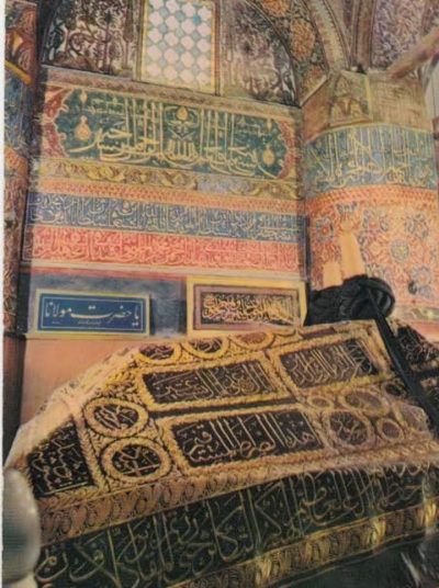 Bayezid II zamanında yenilenerek 1792 yılında Selim III zamanındaki restorasyona kadar son şeklini aldığını bildiğimiz Kubbe-i Hadra’nın altında Mevlana ve Sultan Veled’e ait ayrı ayrı bir sanduka olup olmadığına dair bir vesika bulunmamakla birlikte Süleyman I (Kanuni) zamanında yapılan ancak kitabesiz olduğuna yukarıda dikkat çektiğimiz mermer mustatil kaideli sandukanın üzerinde bir puşide varmı idi? var idiyse ona yazılan hattın muhtevası ne idi? Bu konu hakkında da bir kayda rastlamak mümkün olmamaktadır. Ancak sadece türbe adı verilen onun içerisinde kapalı bir mekânda bulunan önemli kişilere ait sandukalarının puşide ile örtülü olmasının, Türklere mahsus çok eski bir gelenek olduğu rahatlıkla söylenebilir.