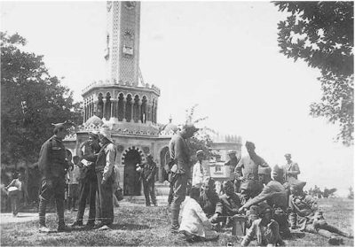 İşgal sonrası Saat Kulesi önündeki Yunan askerleri (City of Smyrna before the Destruction Albümü - Nea Synora-1919)