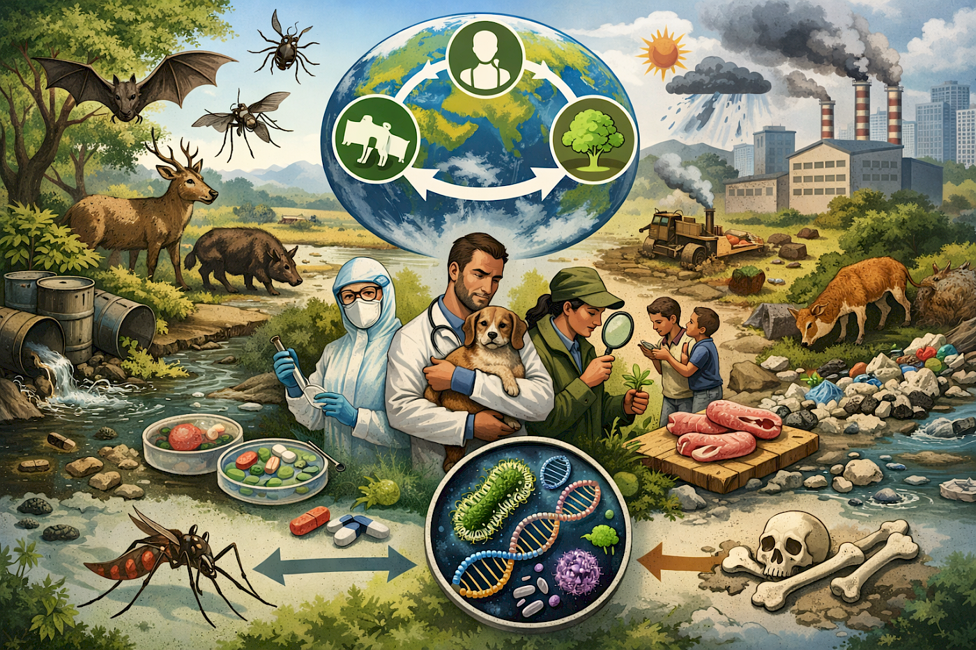 Arazi kullanımı değişikliği, biyolojik çeşitliliğin azalması, iklim değişikliği ve çevre kirliliği gibi çevreye yönelik antropojenik stresörler, hayvan kaynaklı hastalıklara neden olur veya bunları şiddetlendirir.